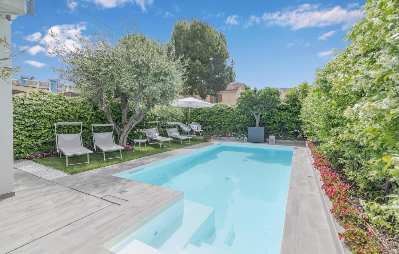 Villa Mediterranea è una struttura fronte spiaggia a Civitanova Marche dotata di piscina privata. Questa casa vacanze è a 24 km da Casa Leopardi e 27 km da Santuario della Santa Casa di Loreto.