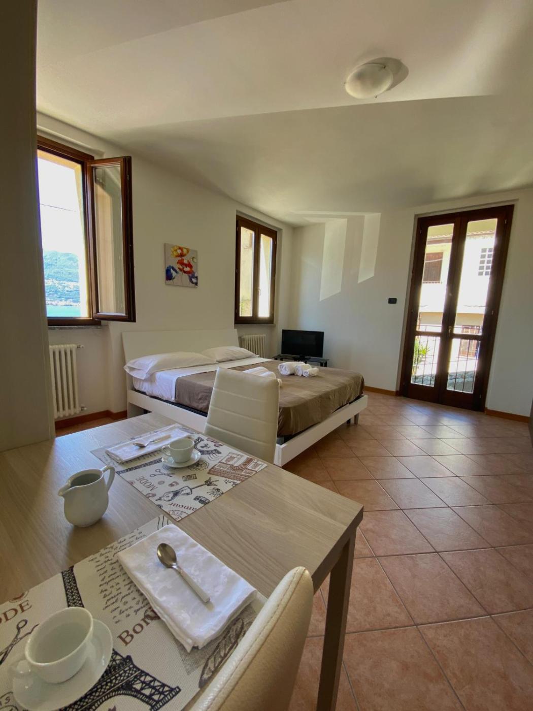 Monolocale Standard. The studio features a wardrobe, an electric kettle, as well as a private bathroom boasting a bath or a shower and a hairdryer. Guests can make meals in the kitchen that has a stovetop, a refrigerator, kitchenware and an oven. This studio offers heating, a flat-screen TV and lake views. The unit has 1 bed. ;