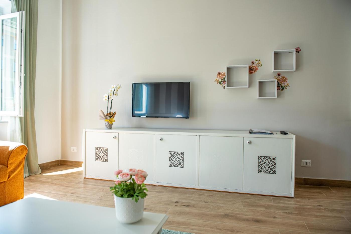 Villa con Vista Giardino. Boasting a private entrance, this air-conditioned villa features 1 living room, 2 separate bedrooms and 1 bathroom with a shower and a bidet. In the well-fitted kitchen, guests will find a stovetop, a refrigerator, kitchenware and an oven. The villa has tiled floors, a seating area with a flat-screen TV, a washing machine, a tea and coffee maker as well as ancourtyard view. The unit has 2 beds.