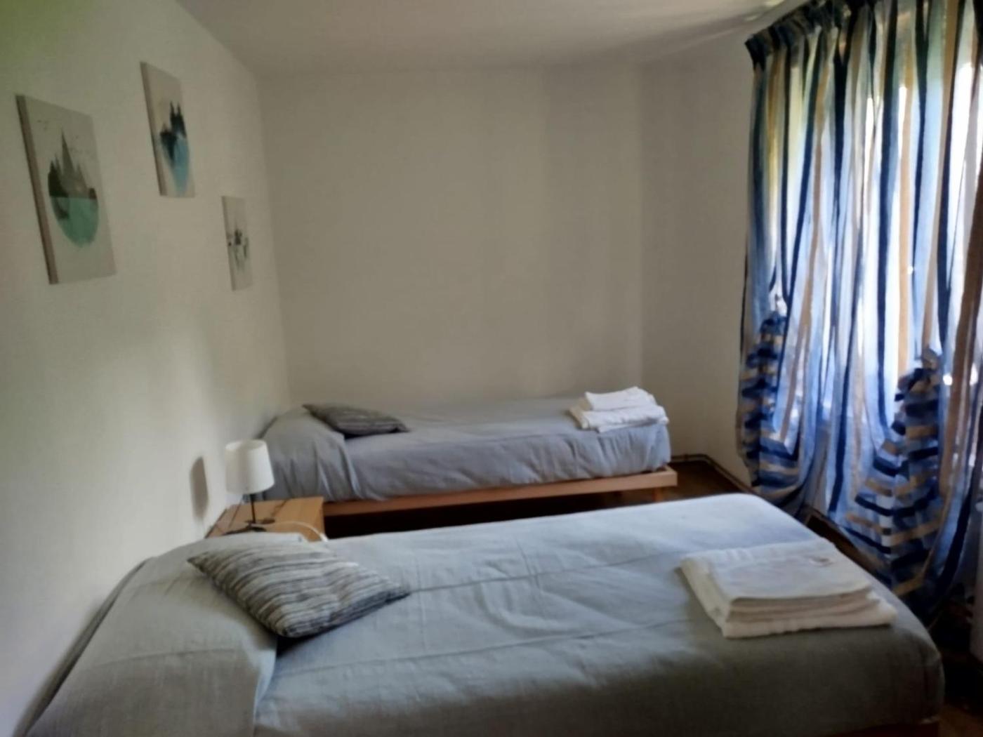 Questa casa vacanze comprende 2 camere da letto, 1 bagno, lenzuola, asciugamani, una TV, un angolo cottura con utensili e un balcone con la vista sulla montagna.