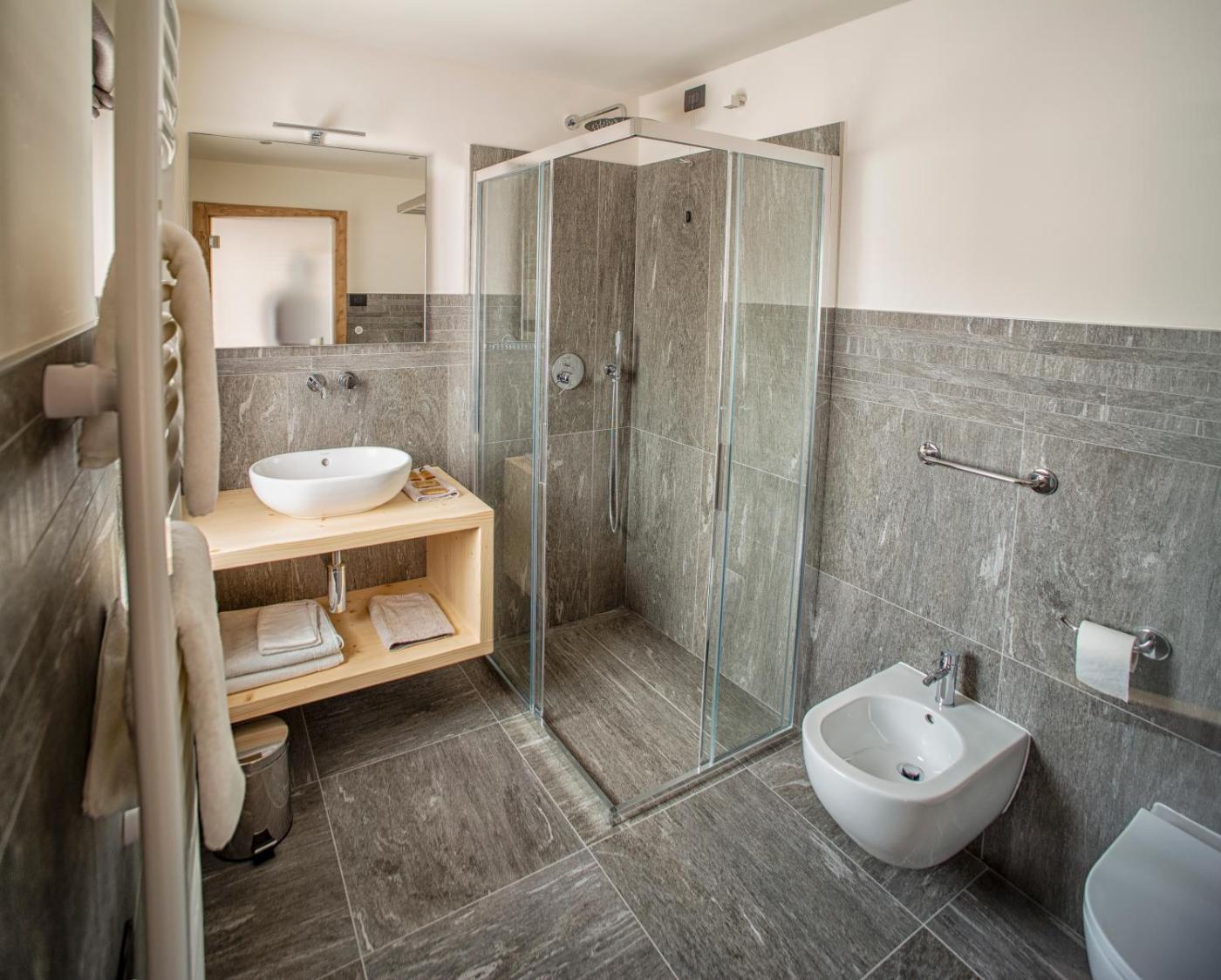 Camera Matrimoniale Deluxe con Balcone. The spacious double room features a private entrance, soundproof walls, a terrace with mountain views as well as a private bathroom boasting a walk-in shower. ;