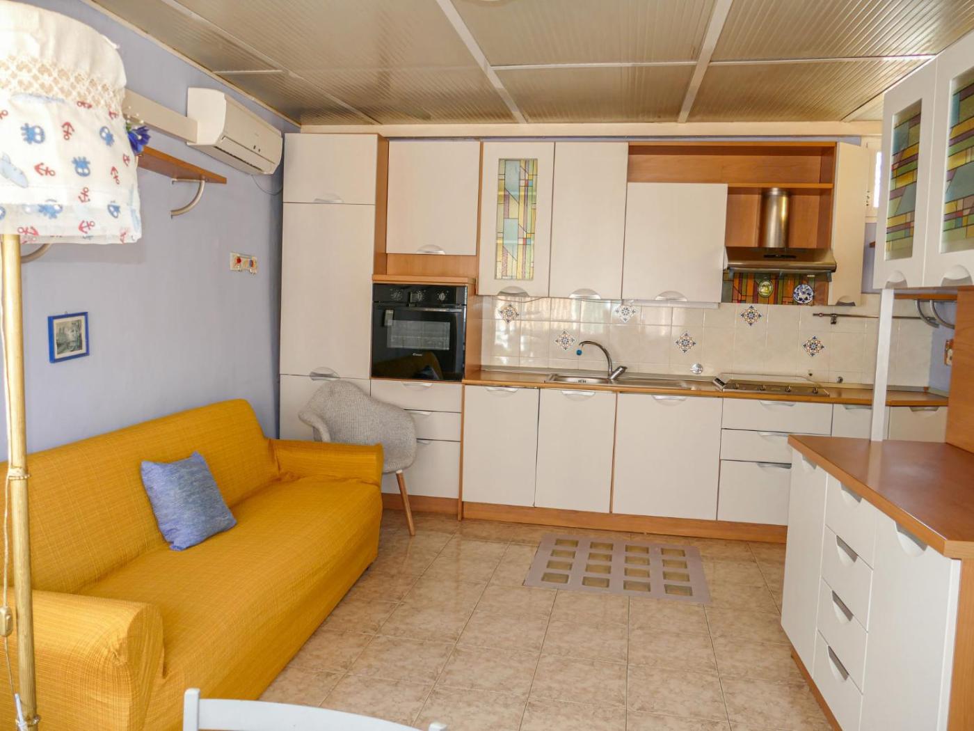 Questa casa vacanze con aria condizionata comprende 2 camere da letto, un soggiorno, un angolo cottura con utensili più frigorifero, e 1 bagno con bidet e asciugacapelli. In dotazione troverete una TV.