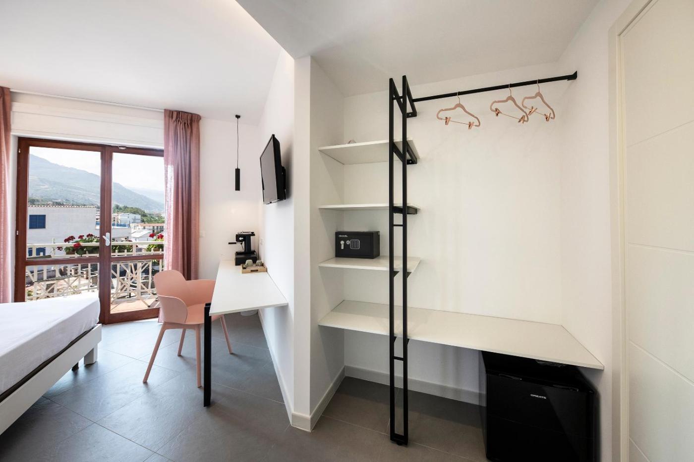 Camera Matrimoniale con Bagno Privato. Camera matrimoniale climatizzata dotata di TV a schermo piatto con canali satellitari, bagno privato e balcone con vista sul mare. Lalloggio presenta 1 letto. ;