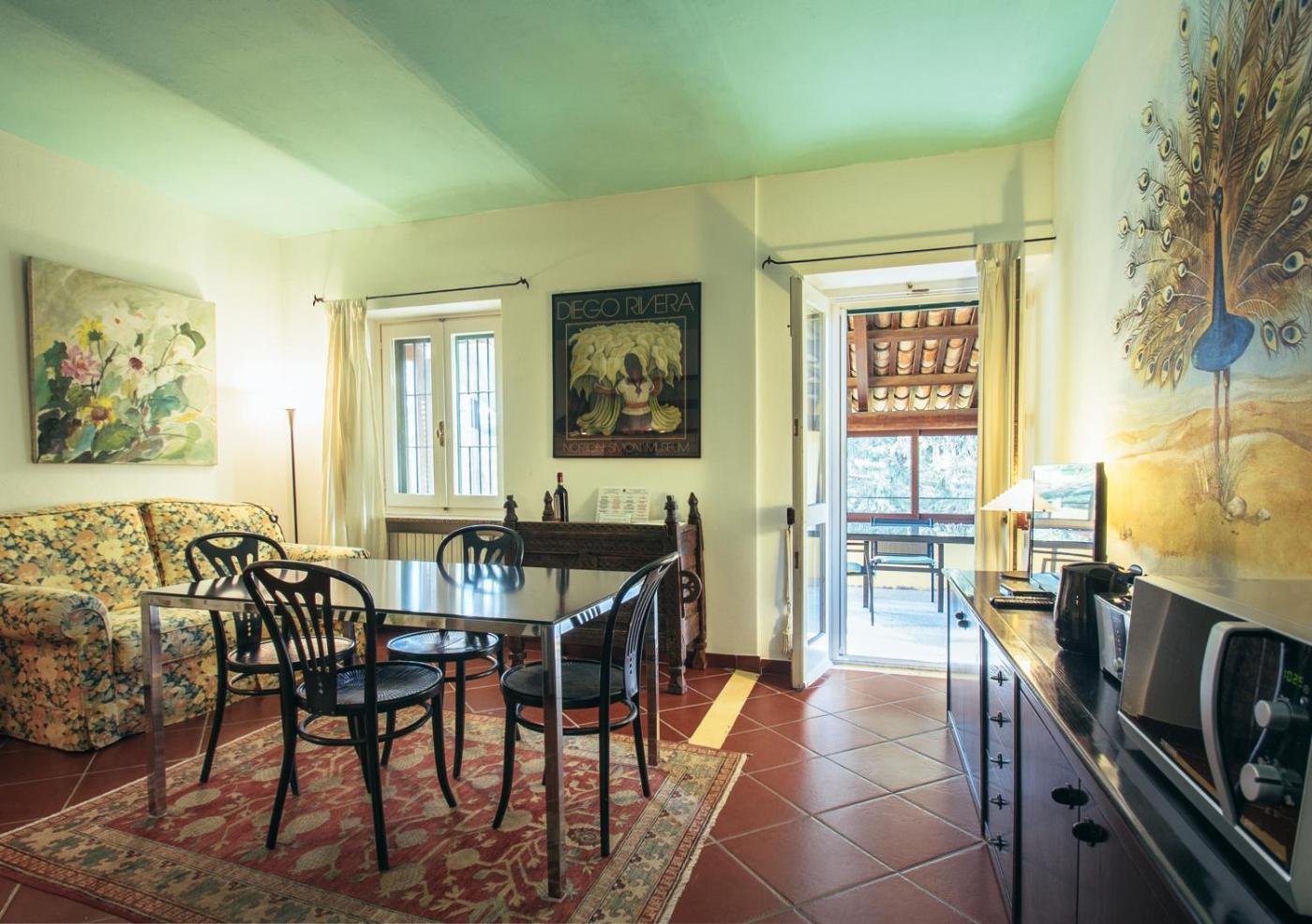 Appartamento con 1 Camera da Letto. This apartment features a fireplace. Featuring a private entrance, this air-conditioned apartment comprises 1 living room, 1 separate bedroom and 1 bathroom with a shower and a bidet. Meals can be prepared in the well-fitted kitchen, which comes with a stovetop, a refrigerator, kitchenware and an oven. The spacious apartment provides a TV with streaming services, a tea and coffee maker, a seating area, a wardrobe as well as garden views. The unit offers 1 bed. ;