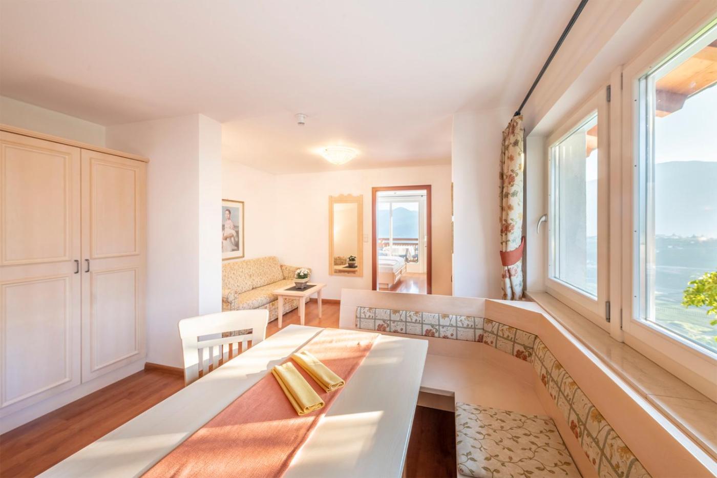 Appartamento Superior con 1 Camera da Letto. Featuring a balcony or patio, this Alpine-style apartment offers views of the mountains, the city of Meran and the garden. It includes a double bedroom plus a living area with fully equipped kitchenette, satellite flat-screen TV and sofa bed. The private bathroom comes with a hairdryer and wired internet is free. ;