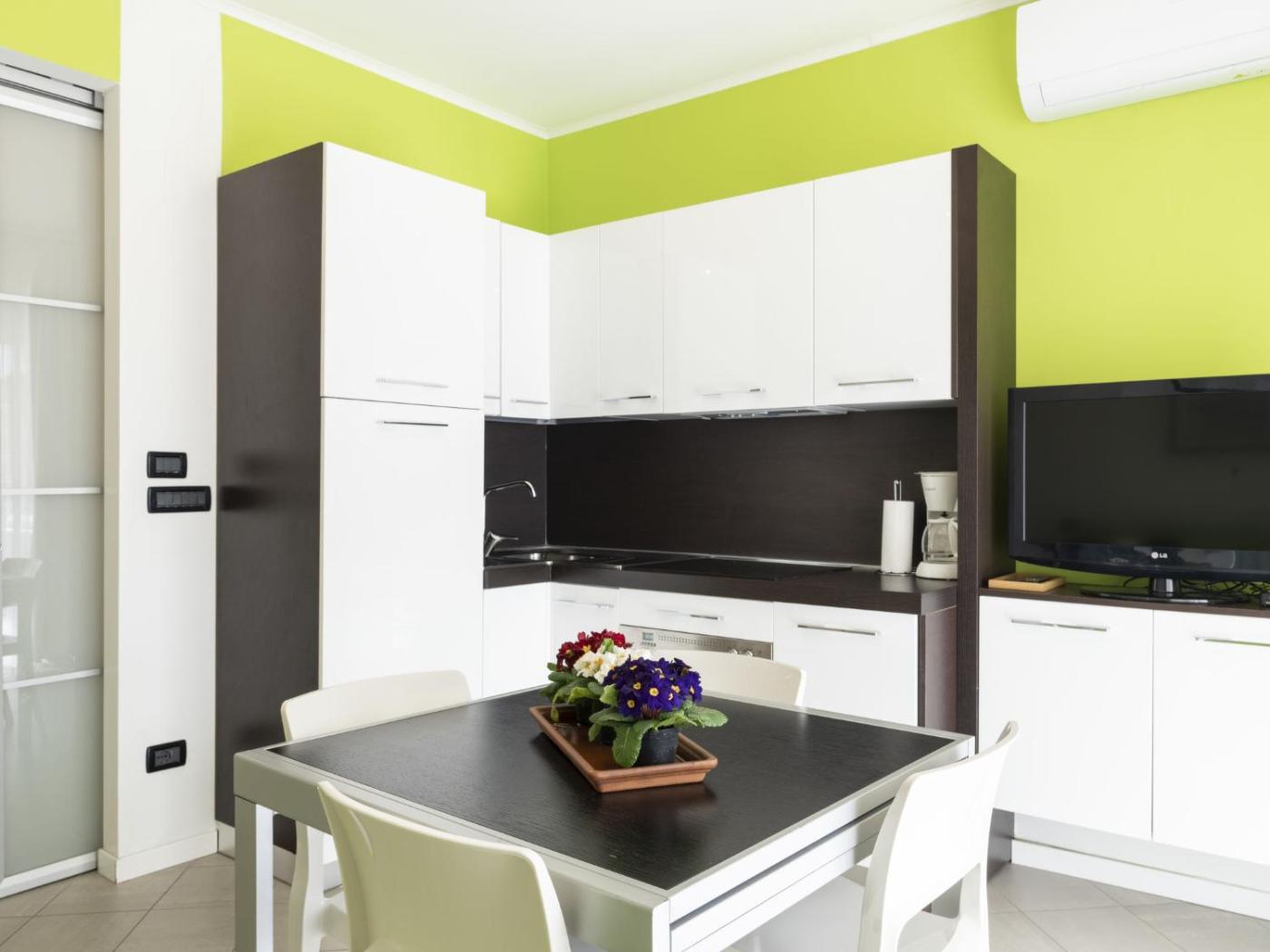 Questo appartamento con aria condizionata comprende 1 camera da letto, un soggiorno, un angolo cottura con utensili, frigorifero e macchina da caffè, e 1 bagno con bidet e doccia. Tra i servizi disponibili troverete una TV.